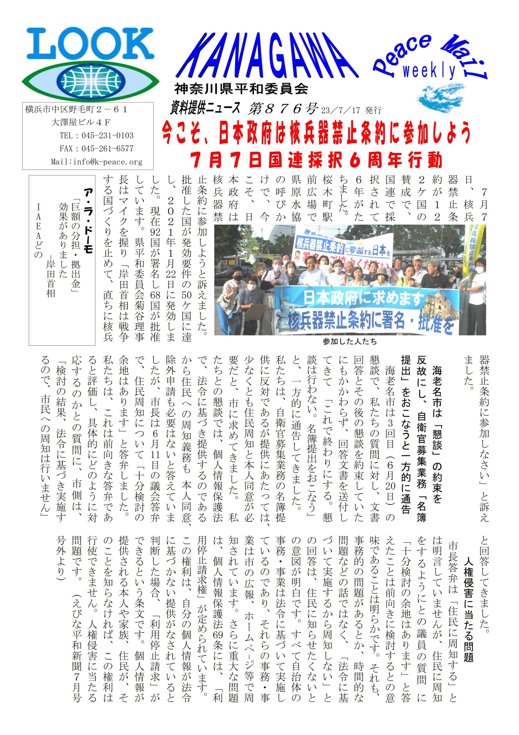 Peace Mail 資料提供ニュース 第876号