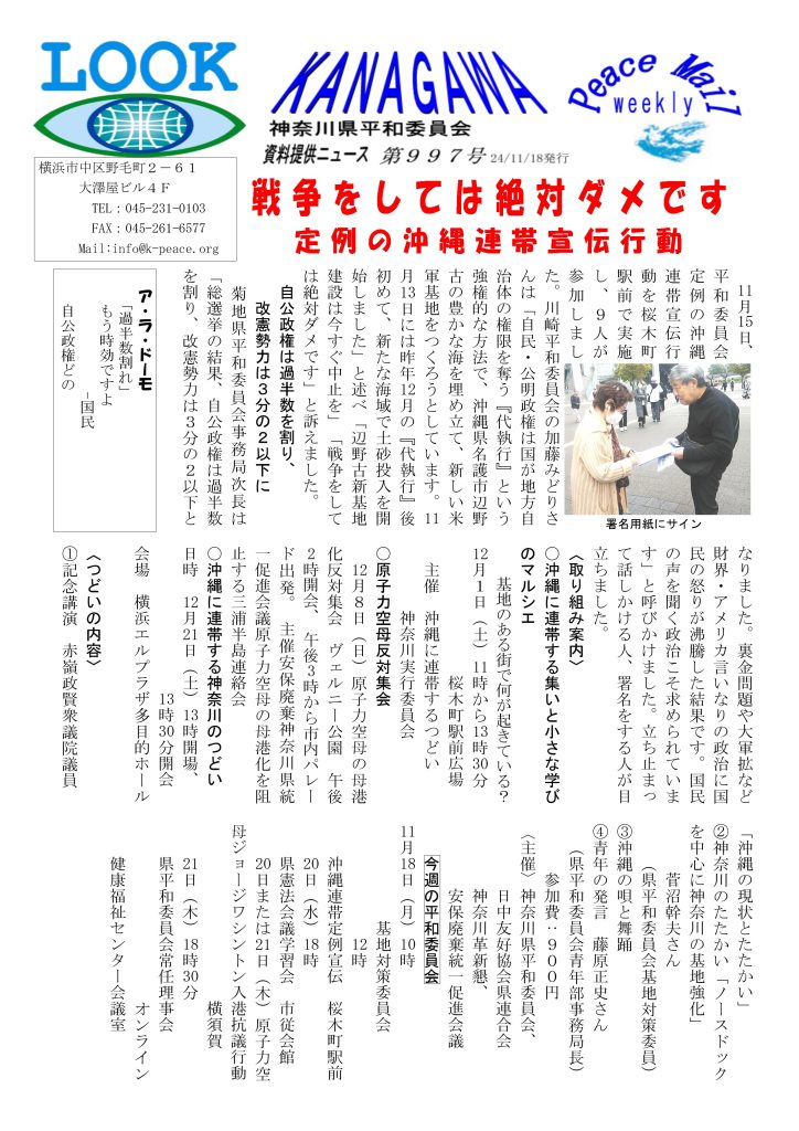 Peace Mail 資料提供ニュース 第997号