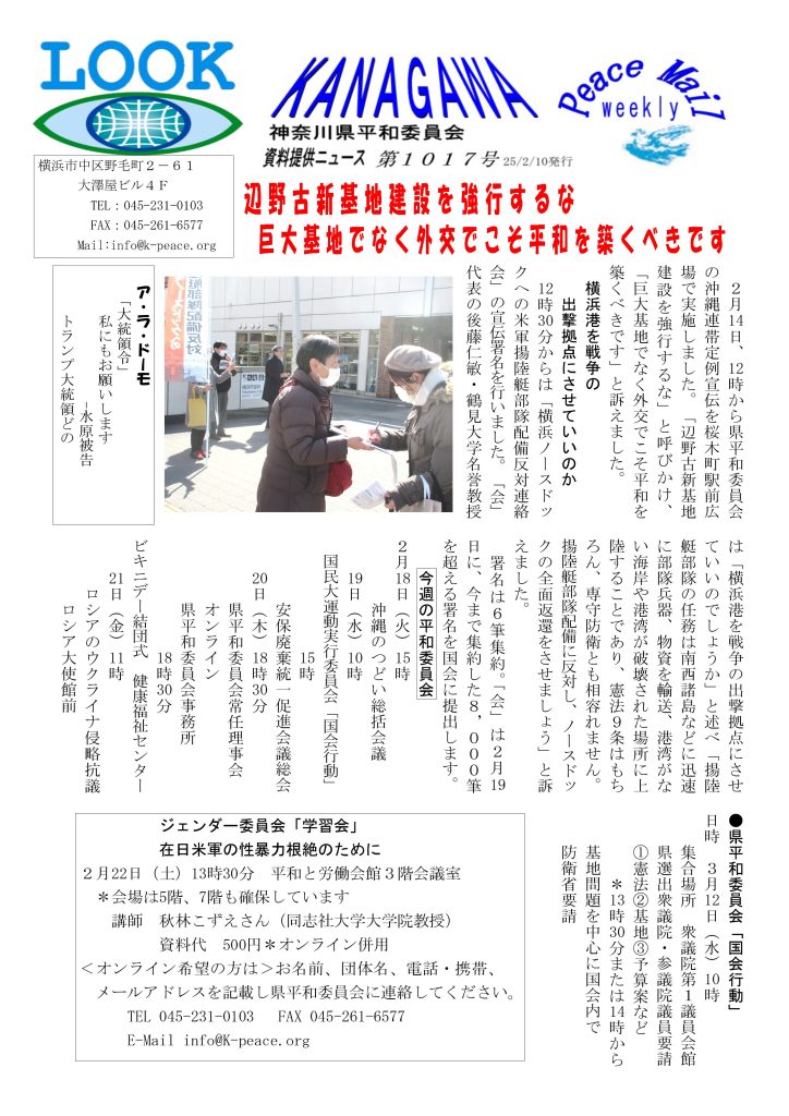 Peace Mail 資料提供ニュース 第1017号